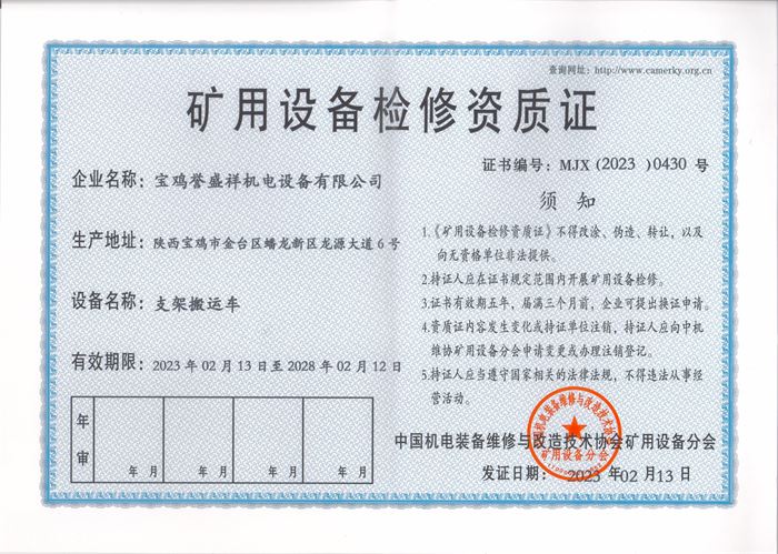寶雞譽(yù)盛祥機(jī)電設(shè)備有限公司成立于2013年6月,注冊(cè)資本6000萬(wàn)元,占地15000余平方米,位于寶雞市蟠龍新區(qū),交通方便,地理位置優(yōu)越?,F(xiàn)有員工30余人,主要設(shè)備20余臺(tái),是寶雞市及周邊地區(qū)專(zhuān)業(yè)從事礦機(jī)配件生產(chǎn)及工礦機(jī)械維修的企業(yè),有32種礦用設(shè)備維修資質(zhì)及15種托輥生產(chǎn)煤安資質(zhì)證書(shū),是寶雞市應(yīng)急管理局招商引資和重點(diǎn)幫扶企業(yè)...